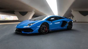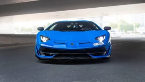 Book your Lamborghini Aventador SVJ Blue rental in Ajman today!